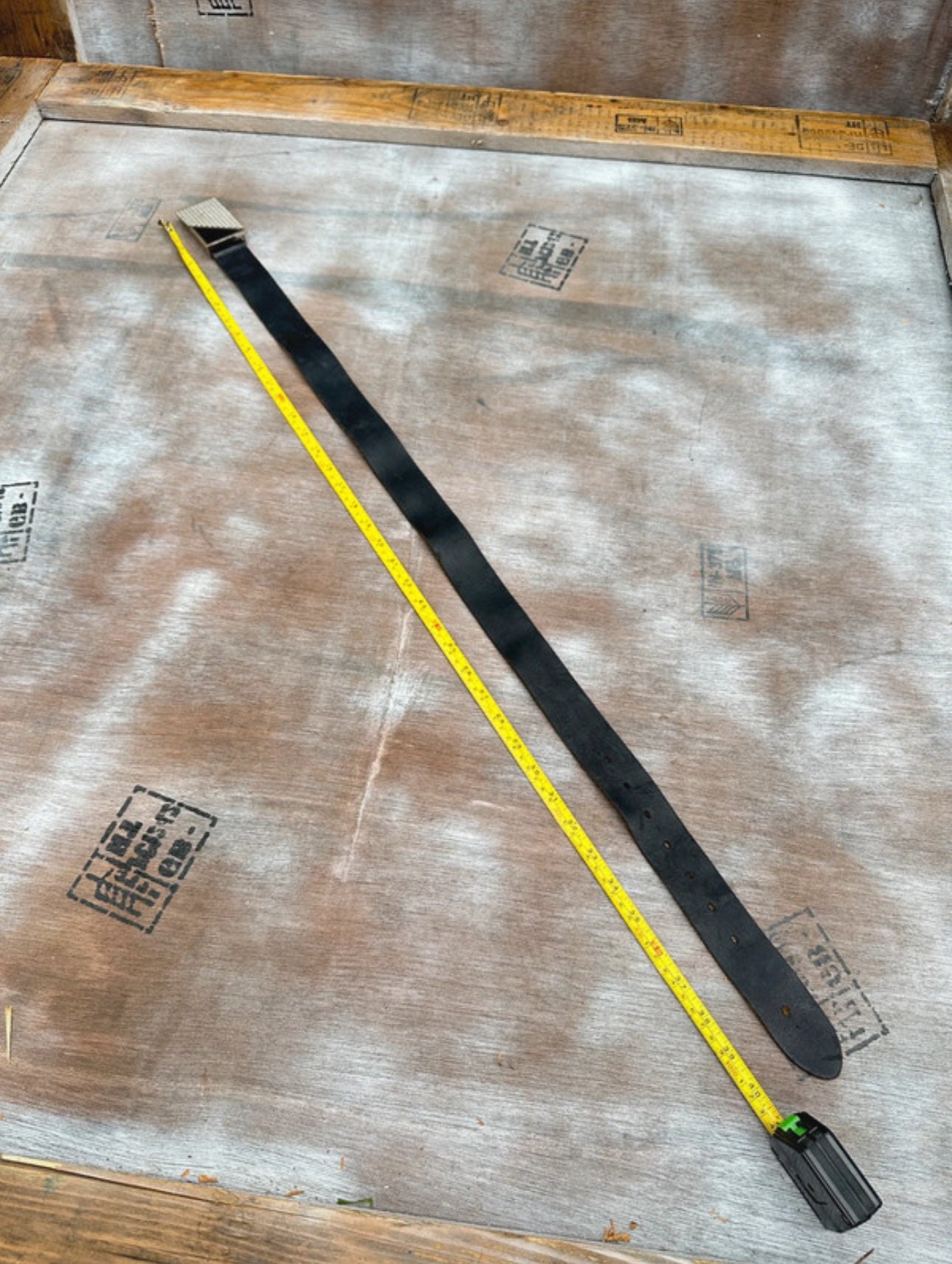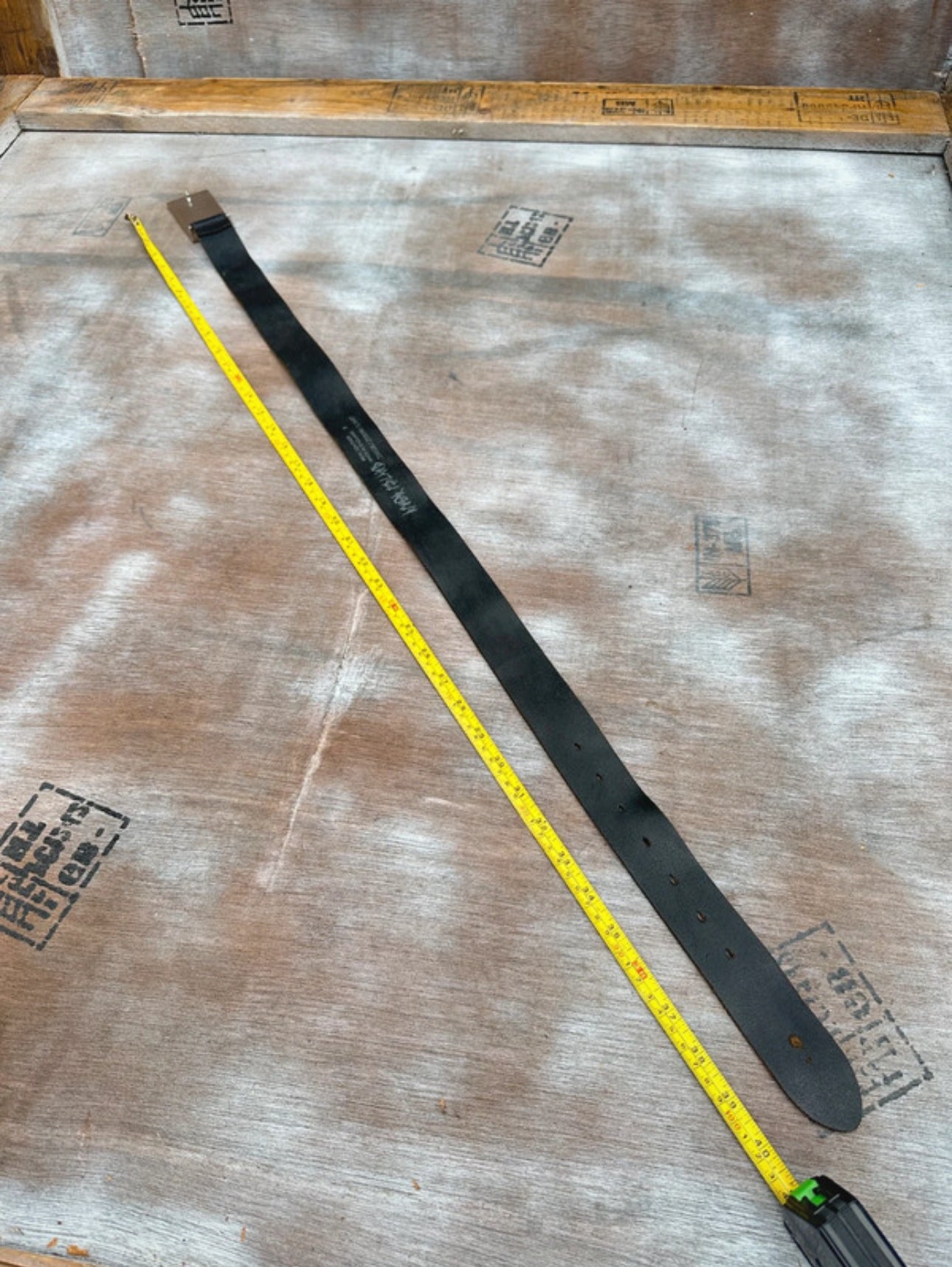Black Leather Belt — Geometric Chrome Plate Buckle (40”)